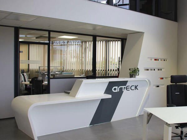 Quầy lễ tân đá nhân tạo có tính uốn cong cao, cho phép tạo ra nhiều hình dáng phù hợp với nhu cầu và không gian của người sử dụng, giúp họ cảm nhận được sự thoải mái và thẩm mỹ cao.